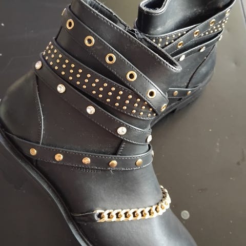 Myydään täysin käyttämättömät nilkkurisaapikkaat. Ovat itselle liian vaikeat laittaa jalkaan rintavamman jalan takia. Hyvä, pitävä pohja ja kiva korko. Sisällä lämmin flanelityyppinen vuori. Ovh oli 129€. Kulkeutuu myös Lappeenrantaan.