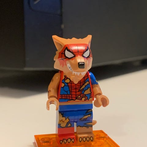 Minifiguuri on hyväss kunnossa. Mielestäni päässä on havaittavissa pientä kulumaa verkkokuviossa. Otin päästä lähikuvat niin voi katsella itse tarkemmin.