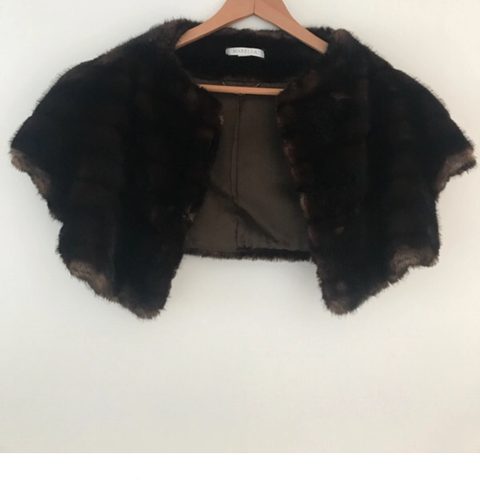 Beautiful fur-like real feathers bolero party jacket with lining. Very fluffy. No tags with brand or materials, but it is made of real ostrich/marabout feathers. Armpit to armpit width around 43 cm, fits XS.