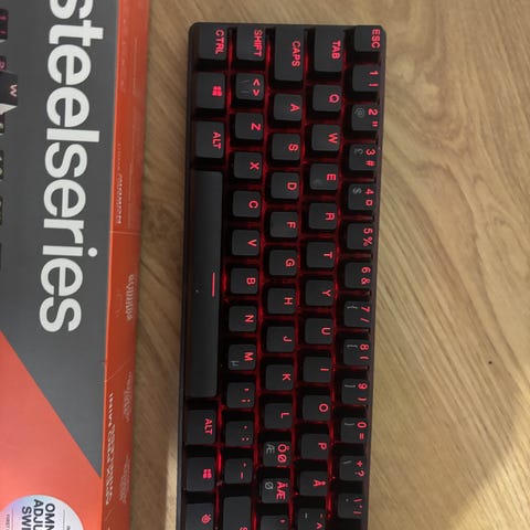 SteelSeries Apex Pro Mini näppäimistö, musta väri, RGB-taustavalo, mekaaniset kytkimet. Kompakti koko, sopii pelaamiseen ja yleiseen käyttöön.