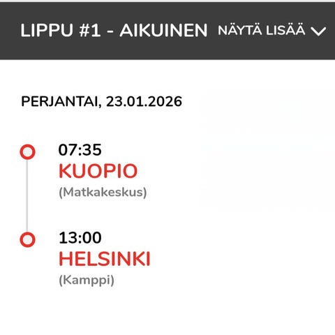 Onnibus opiskelijalippu Pori-Tampere, pe 21.11, klo 18.05 - 20.35. 1 pysähdys Huittinen