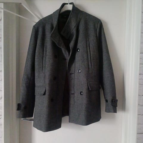 Zara Takki punaisena, kokona L miehille. Takissa on vetoketjutaskut ja mustat resorit helmassa, hihansuissa ja kauluksessa. Materiaali on kevyt ja sopii ulkokäyttöön.