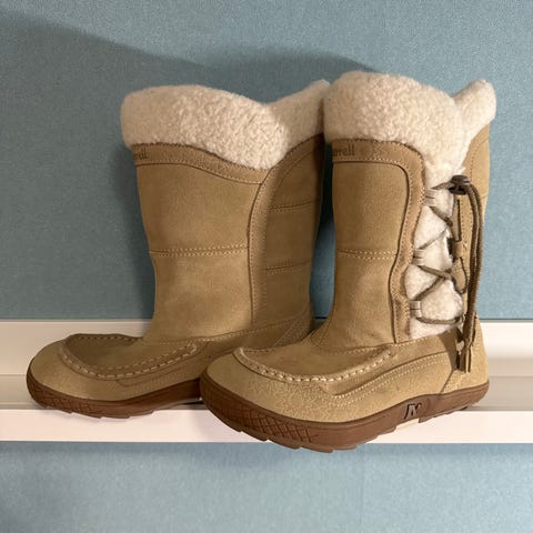 Kuvanmukaiset todella lämpimät Merrell kitkakengät. Pidetty vain pari kertaa, kapea lesti itselleni. Savuton, lemmikitön talous.