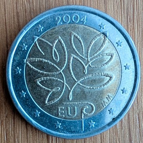 Euro 2 euron juhlaraha vuodelta 2004. Kolikkoa on säilytetty suojakapselissa ja mukana on säilytyspussi. Risuraha.