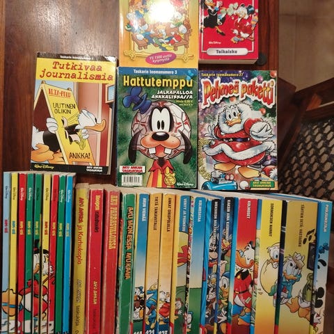 Aku Ankan taskukirja 114kpl 1-114 väliltä puuttuu vain 13 & 78. Roope-Setiä 20kpl. Sudenpentujen käsikirja ja Sudenpentujen Sana Solmuja kirja. Suurin osa vaihtarista ostettuja 80-luvulla. Tule katsomaan ja tarjoa järkevää hintaa. En myy toistaiseksi Aku Ankan taskukirjoja yksittäin.