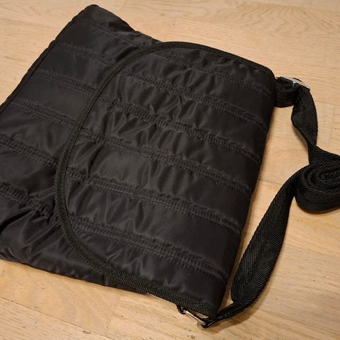 Käyttämätön ja siisti olalle sopiva laukku. Sisällä on taskuja myös vetoketjulla. Materiaali on vettä hylkivä. Koko 28, 34 ja 9 cm.