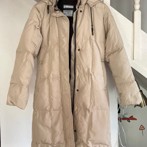 S Joutsenen hupullinen untuvatakki. Suora malli. Kaksisuuntainen vetoketju. Taskut.
