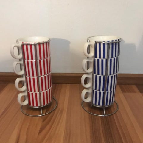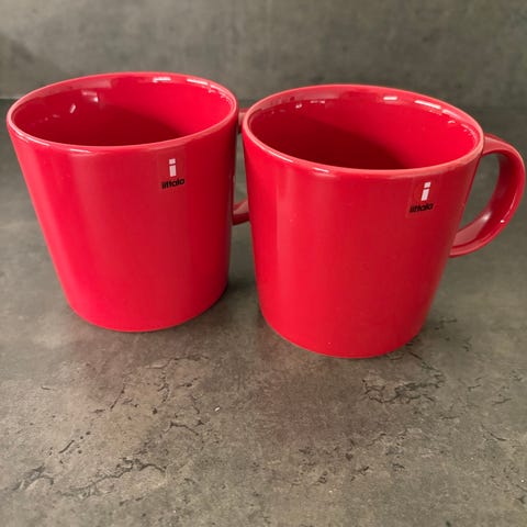 6 kpl mukeja, yhdessä mukissa pieni jälki (kuvassa). Muut moitteettomassa kunnossa, hyvin vähällä käytöllä ollut. Nouto Kellon Kiviniemi.