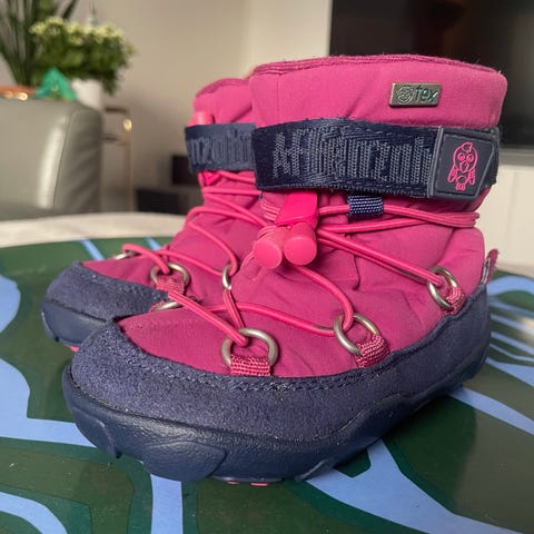 Myydään yhden talven käytössä olleet lasten Affenzahn snowboot paljasjalkakengät. Koko 22. Edelleen vedenpitävät. Toisessa nauhassa muovitulppa irronnut, ei haittaa käyttöä.