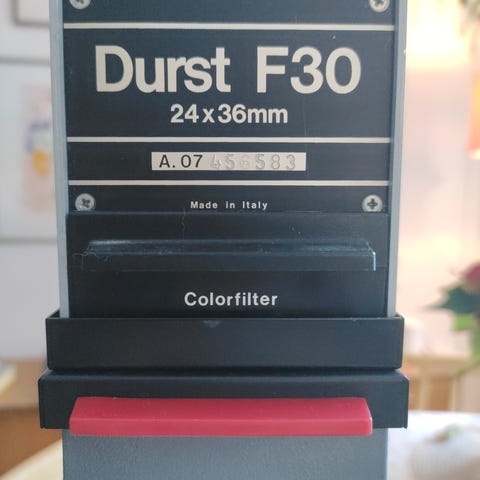 Suurennuskonen Durst M370BW, kaikki toimii, ehjä optiikka, hieman kosmeettisia vaurioita. Lamppu on ehjä.