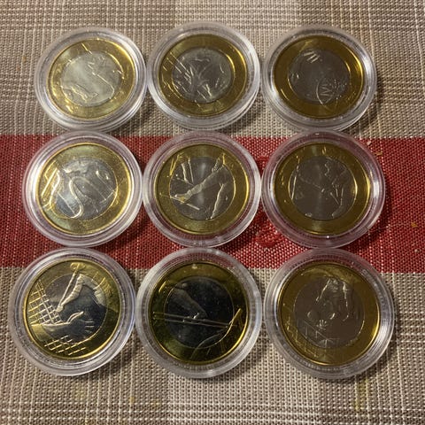 5 euron muistorahat 2 kpl hopeaa kotelossa