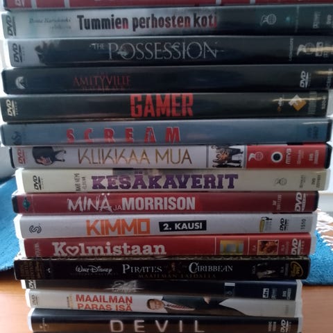 Myydään sekalainen setti dvd-elokuvia alkaen 1e kpl, idioluutio ja waynes world myyty.