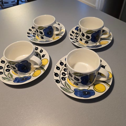 Myydään Arabian Paratiisi-astiaston kupit 18cl ja niihin vadit 14cm ,molempia 10 kpl - yhden parin hinta 18€.