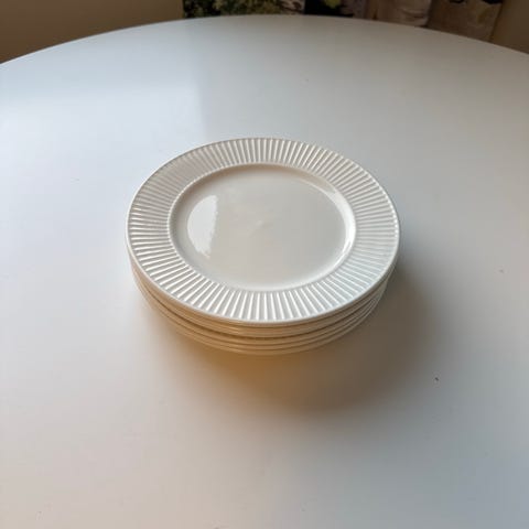 Neljä virheetöntä, käyttämätöntä pikkulautasta.