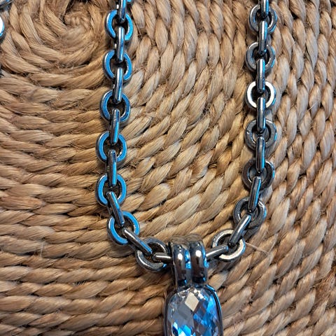 Kaunis Dyrberg/Kernin kaksirivinen kaulakoru, jossa lilan sävyisiä putkihelmiä ja etuosassa tyylikäs kaareva hopeansävyinen metalliosa. Korussa tukevat metalliosat ja laadukas lukko D/K-leimalla sekä Dyrberg/Kern-riipuslaatta. Istuu kauniisti kaulalle – moderni ja elegantti asuste arkeen tai juhlaan. Hyvässä käytetyssä kunnossa.