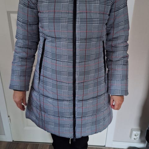 Tampellan retro kankaasta ompelijalla teetetty uniikki ohut toppatakki Irroitettava huppu, hihansuissa resorit , laadukas vuorikangas sekä metallien vetoketju. Koko 36-38, reilu 36 ainakin . Kainalo kainalo 55cm, pituus 82cm ja hiha 42cm.