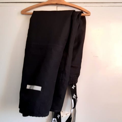 Myydään siniset lasketteluhousut koko n. 160 - 165cm. Pientä kulumaa vasemmassa polvessa (kuva), muuten ehjät.