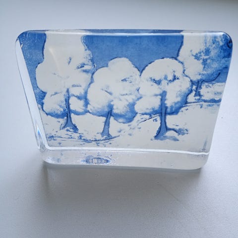 Iittalan lasikortti, Sinisessä taivaassa keinuen, koko 12 x 15.