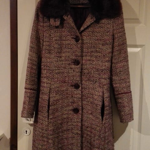 Hyväkuntoinen, Anne Klein merkkinen villakangastakki. A-linjainen, nappikiinnitys. Koko on pieni L.