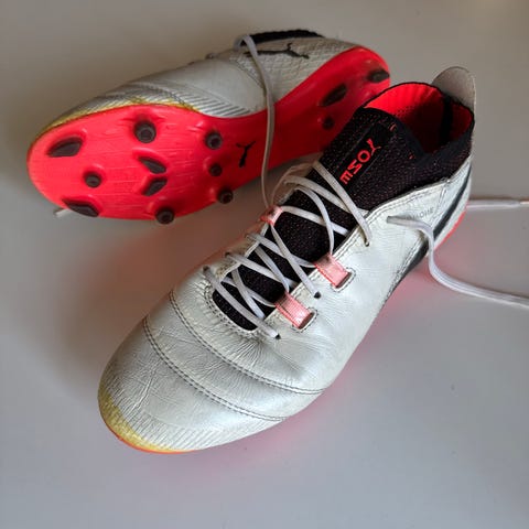 Koko 42. Hyvässä kunnossa, hieman likaiset tekonurmen kumista vaan.