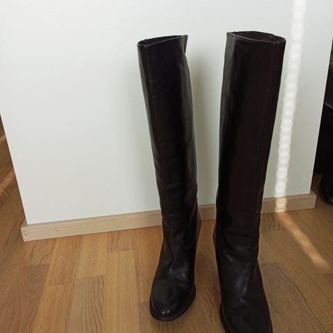 Korkeus noin 35 cm ja korko noin 8 cm.