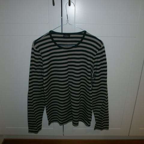 Myyntiin Marimekko Eleellinen Karuselli paita koossa M. Käytetty muutaman kerran, mutta kunnossa ei moittimista. Kangas osittain läpikuultavaa. Vyötäröllä kiristettävä kuminauha, hihansuissa ja pääntiellä kuminauha. Kk noin 63cm, pituus n. 62cm. MMM