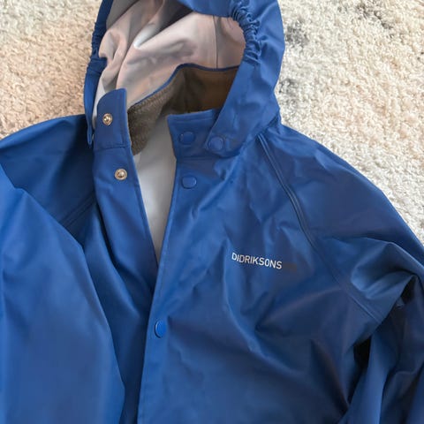 Didriksons Galon sadetakki ja housut koko 130cm. Takissa ja housuissa lämmin vuori.
