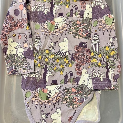 Myyn vauvan muumibodyn koossa 86. Kangas on jonkin verran haalistunut ja pinnalla aavistus pesunukkaa (muumibodyksi mielestäni vain vähän). Muuten kunto on oikein hyvä. Täysin ehjä ja tahraton.