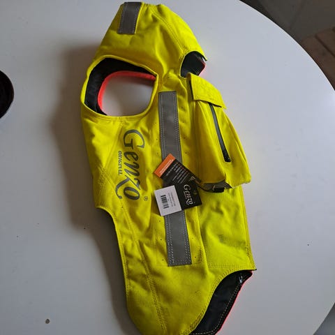 BS Planet heijastava koiran kevlar susiliivi. Takissa on kirkas oranssi väri ja heijastavat osat näkyvyyden parantamiseksi sekä kevlar suojattu rakenne suden puremien aiheuttamien vammojen estämiseksi. Koko XL. Säädettävät kaulanympärys 35-55cm ja rinnanympärys 55-65cm.