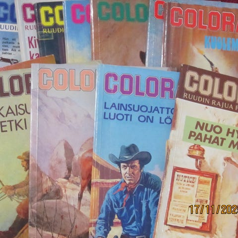 COLT / Pehmeäkantinen kansikuvallinen lännenlehti. Yhden lännenlehden hinta kaksi euroa myydään yhdessä ja/tai yksitellen. Länkkäreistä löytyy kuvat/numerot yksitellen. Jos joku asia mietityttää, niin kysymällähän se selviää. Kaikki lännenlehdet ovat siistejä ja hyvässä kunnossa.