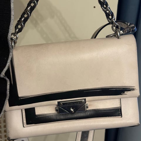 Michael Kors Tekonahka Olkalaukku naisille vaaleassa värissä. Laukku on valmistettu tekonahasta ja siinä on ketjuhihna olkahihnana. Sopii arkeen ja erilaisiin tilaisuuksiin.