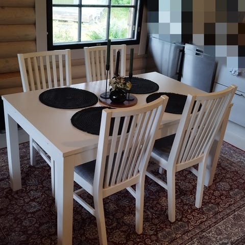 Siistissä kunnossa oleva Ikea Bjursta ruokapöytä (ei tuoleja) myyntiin. Pöytää voi jatkaa kahdella jatkopalalla (tulee mukana), jolloin ruokapöytä taipuu yhtä hyvin 4 hengen tai vaikka 8 hengen tarpeisiin. Väri on mustanruskea, pöytä on nyt kasattuna helppoa kuljetusta varten.