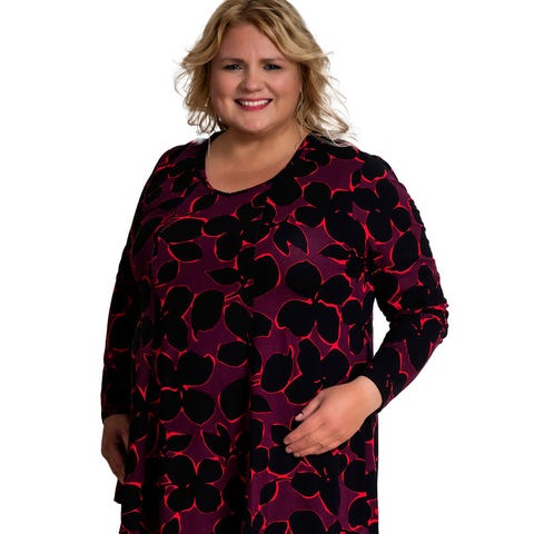 Uusi plus-koon mekko arkeen ja juhlaan - Halo plus-koon kukkamekko trumpettihihalla