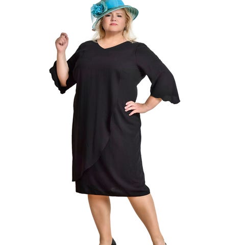 Shenina kotimainen - kokonaan Suomessa valmistettu - musta hihallinen Shenina Maippi juhlamekko plus-koossa