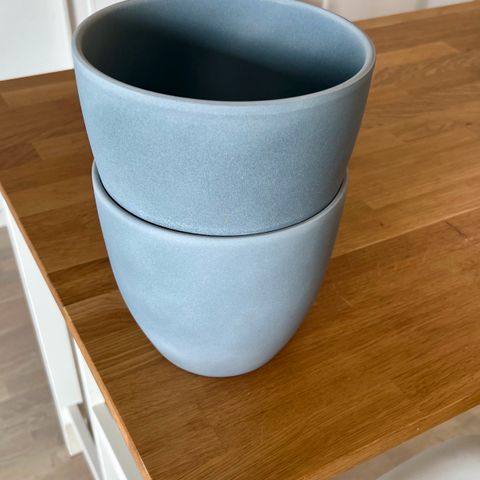 Kolme ruukkua mutta yhdestä puuttuu lautanen,korkeus 9 cm alusen kanssa ja läpimitta 11 cm