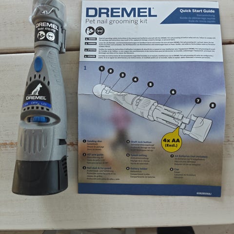 Myydään lemmikkieläimen kynsien siistimissarja Dremel 7020. Laite on uutta vastaava, ainoastaan pari kertaa testattu. Toimii neljällä AA-paristolla. Hiljainen moottori. Tassunohjain kokoaa kynsipölyn. Alkuperäisessä pakkauksessa mukana hiomalaite, käyttöohjeet ja neljä kpl vaihdettavia hiomalaikkoja.
