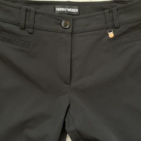 Tummansiniset suorat housut, pituus haarasta 73 cm. Lahkeen suun ympärys 36 cm. Ei taskuja. Vyötärön ympärys 89 cm. Haara-vyötärön korkeus 27 cm