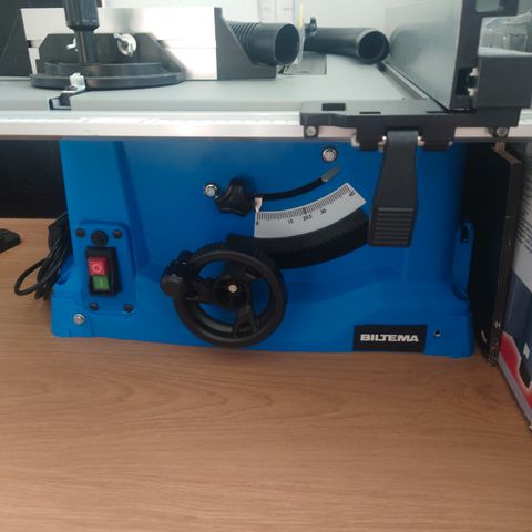 Kity pöytäsaha, jossa alumiinipöytälevyt ja teräsjalusta. Soveltuu puun ja muiden materiaalien sahaamiseen. Laite on tarkoitettu työpajasovelluksiin ja tarjoaa vakauden sahaustyölle.