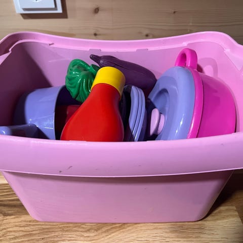Sisältää kerma/maitonekan, sokeri/ keittoastian, kolme kuppia ja 4 lautasta. Kori sisältyy kauppaan.