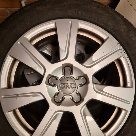 Audin alkuperäiset alumiinivanteet kesärenkailla. Siistit pientä käytönjälkeä toki. Renkaat Linglong greenmax 0221 paistolla. Pintaa noin 5.5-5.6mm.