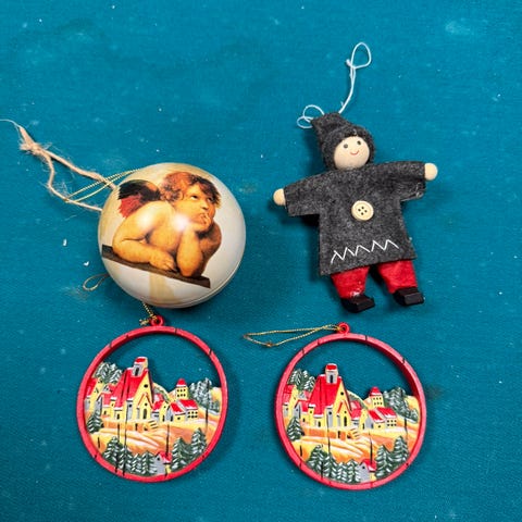 - 4 kpl joulukelloja, tiivistettyä paperi massaa, metallisilla koristelenkeillä