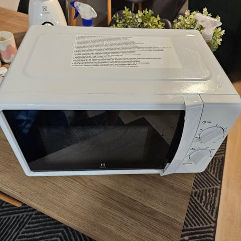 Mummin vanha mikroaaltouuni, jota säilytin käyttääkseni itse. Myydään kuitenkin eteenpäin seuraavalle käyttäjälle.