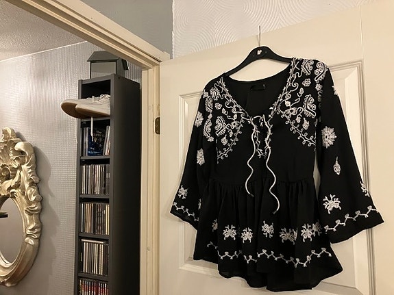 Uutta kotia etsii kuvan upea vain kerran kokeiltu joustavaa viskoosia oleva pitkä pusero kuvioin