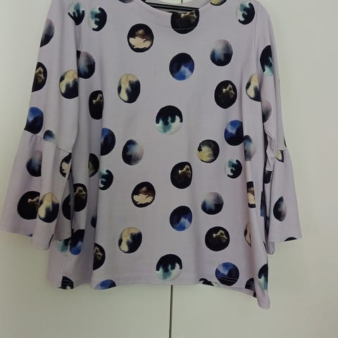 Myyntiin Aarre Celene paita / toppi koossa XL. Voidaan pukea joko napit eteen tai taakse. Nappilista umpinainen. Käytetty, väri paikoin hieman haalistunut (kainalot, nappilista). Kk noin 59cm, pituus noin 53cm. Nouto Oulusta tai postitus, jolloin hintaan lisätään postikulut. MMM