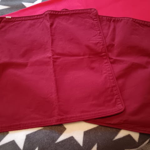 3 kpl jouluiseen sisustukseen sopivia Pentikin tyynynpäällisiä. Hetken olleet aikanaan käytössä, joten kunto on uudenveroinen. Todellista väriä oli tosi vaikea saada kuvaan, ovat oikeasti vielä hieman tummemman ja syvemmän punaiset.