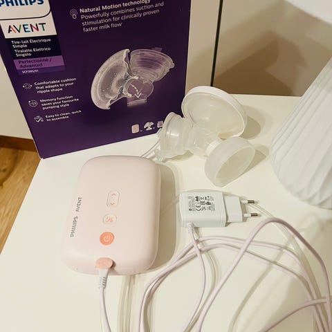 Keväällä -24 uutena ostettu rintapumppu. Testattu, mutta ei tullut meillä sitten kuitenkaan käyttöön. Kaikki osat on tallessa. Pumpun osat ja pullot on pesty ja keitetty, mutta kannattaa toki keittää vielä uudestaan ennen käyttöä. Ainut ns. moite on, että käyttöoppaan takana oleva laitteen kokoamispikaopas on mennyt ruttuun, koska kastui vedestä. Opas on kuitenkin edelleen hyvin luettavissa. Mukaan annan yhden extra Philips Avent -tuttipullon, joka sopii laitteeseen. Uutta vastaava kunto.
