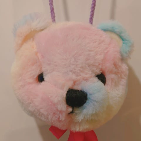 Pörröinen valkoinen nallen pään mallinen pussukka. Pieneen vetskaritaskuun mahtuu esim. avaimet tai kolikoita. Ostettu It's Demolta Japanista.