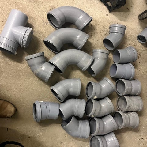 Ylijääneitä iv putkia ja mutkia yms. Suurinosa 160mm, joitain 124mm.