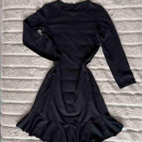 Zara Basic arkimekko naisille, koko S, musta väri. Mekko on valmistettu mukavasta materiaalista ja siinä on pitkät hihat sekä yksinkertainen, suora malli.