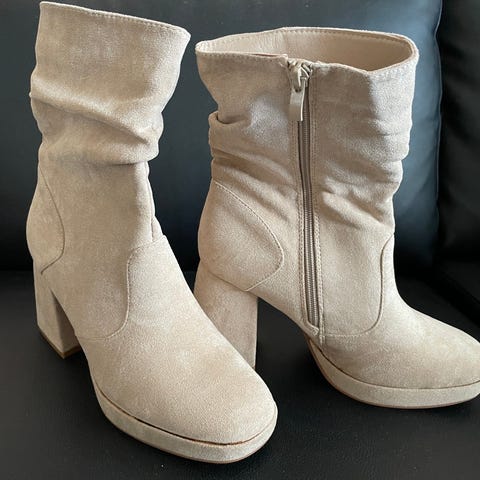 Myydään kauniin ruskeat mokkanahka kiilakorko nilkkurit.